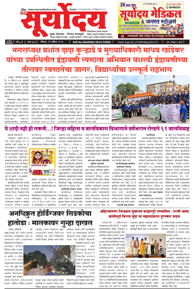 मराठवाडा आवृत्ती Page: 5 April 19, 2026 << First << 1 2 3 4 5 >> Last >> Page 1Page 2Page 3Page 4Page 5 × मराठवाडा आवृत्ती Full PDF << First << 5 >> Last >> Page 1Page 2Page 3Page 4Chhatrapati sambhaji nagar